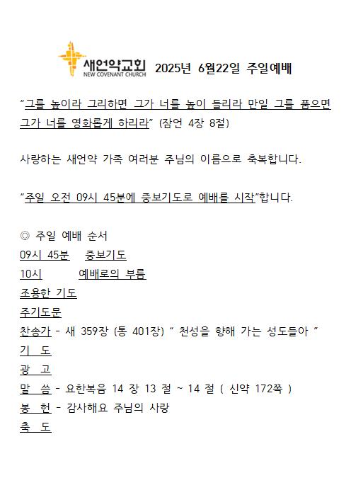 25-06-22 주일예배 프로그램